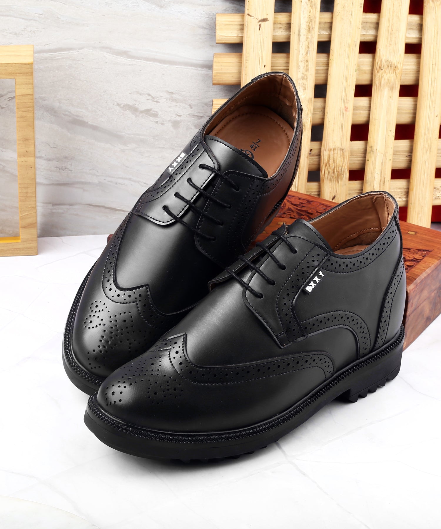 Step up your style and height with these elegant Lift Brogues for Men. Featuring a hidden insole that adds up to 9cm (3.5 inches) in height, these shoes offer both confidence and comfort. Crafted from premium faux leather with classic brogue detailing, they’re perfect for formal occasions, office wear, or any event where style matters. The lace-up design ensures a snug fit, while the cushioned interior keeps you comfortable all day.